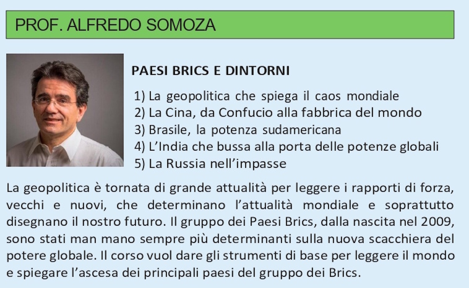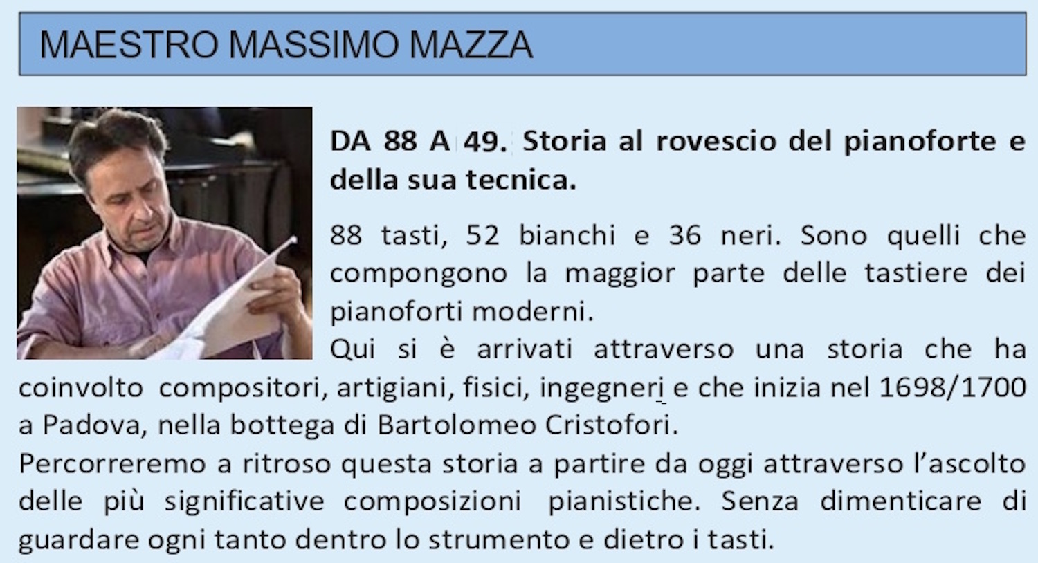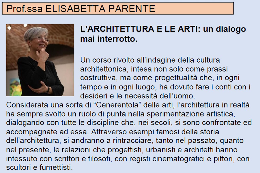 Ore 16:15 – Presentazione dei corsi, con la presenza di alcuni dei docenti in calendario.
